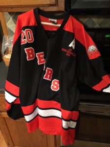 Hanna’s White Bear Lake Bears hockey jersey from her U19 championship team, after being pulled from the fire.