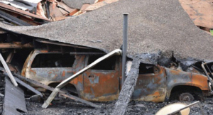 You can see Kirk’s black Suburban sitting next to the house as the garage fire raged. This photo was taken just 20 minutes after we left the house.